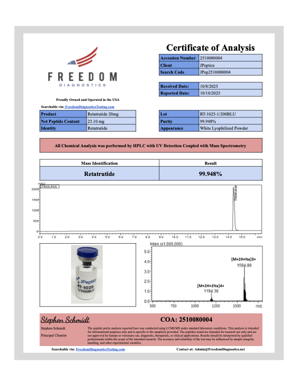 Each batch of JPT-G3 comes with a complete Certificate of Analysis showing: